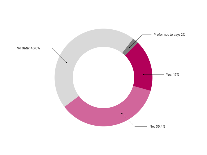 The number of employees sharing their sexual orientation has stayed fairly similar over the past couple of years. As with other diversity information, we find that many new starters don't disclose this when they join us.